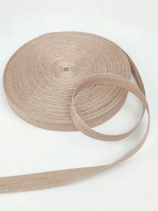 Стрічка джутова 2,5 см, з люрексом, срібло 50 м в рул.