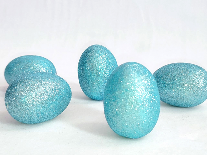 Декоративний виріб Яйце з глітером, блакитне, 7 см