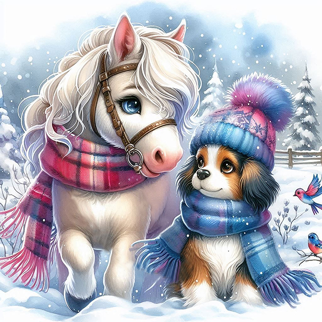 Зимова прогулянка, 25*25см. Набір для творчості зі стразами на підрамнику