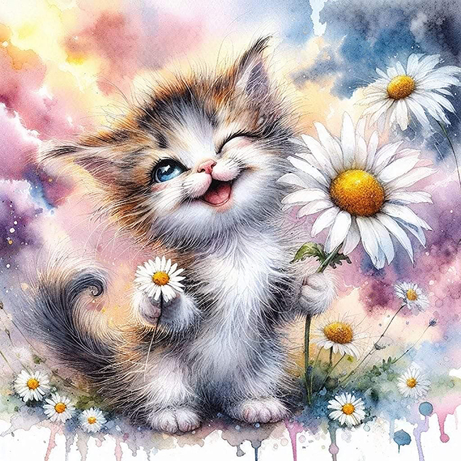 Щастя в ромашках, 25*25см. Набір для творчості зі стразами на підрамнику