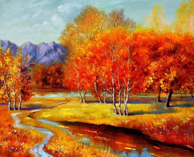 Золота осінь, 50*40см. Набір зі стразами (полотно+тримач)