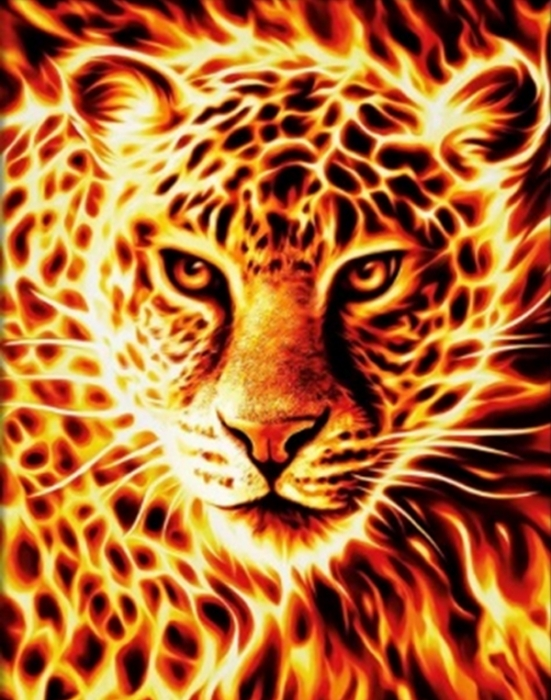 Вогняний леопард, 40*50см. Набір зі стразами (полотно+тримач)