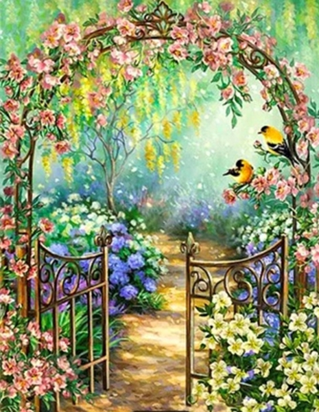 Літній садочок, 40*50см. Набір зі стразами (полотно+тримач)