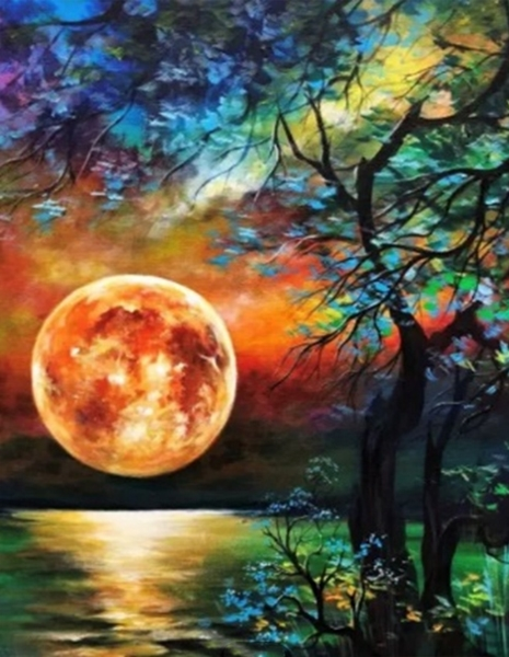 Вечірній пейзаж, 40*50см. Набір зі стразами (полотно+тримач)
