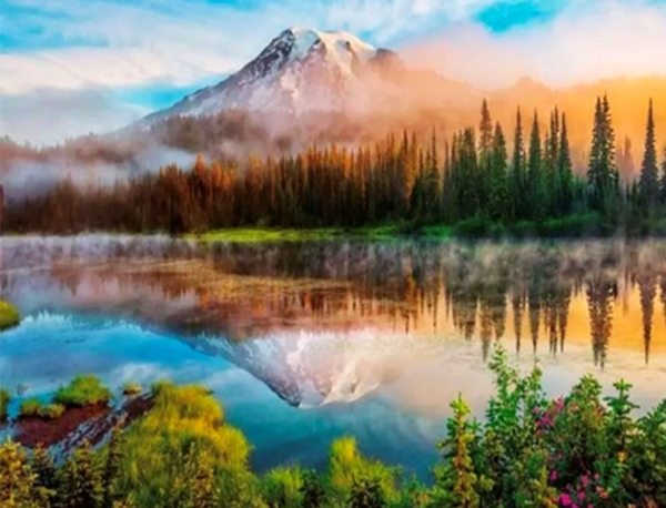 Гірське озеро, 50*40см. Набір зі стразами (полотно+тримач)