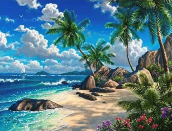 Під пальмами, 50*40см. Набір зі стразами (полотно+тримач)