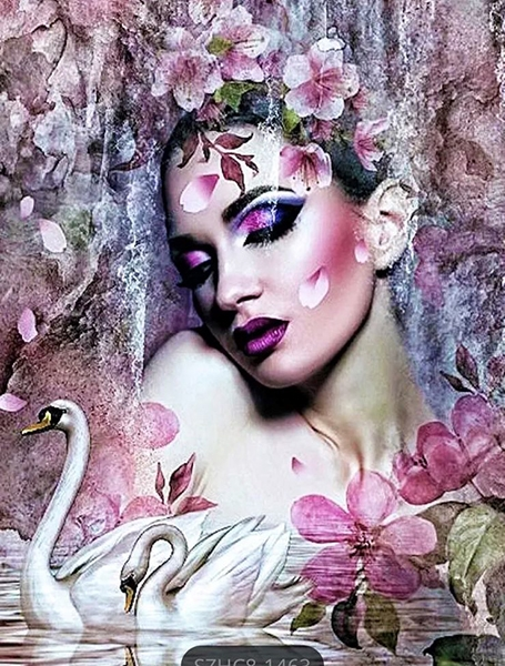 Принцеса Лебідь, 40*50см. Набір зі стразами (полотно+тримач)