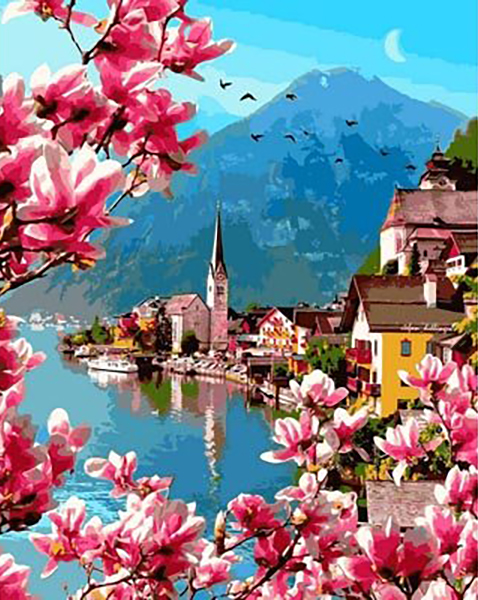 Весна, магнолії, 40*50см. Набір зі стразами (полотно+тримач)
