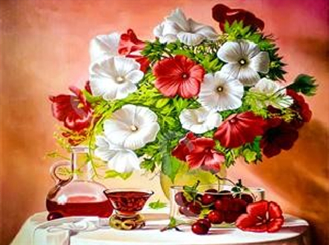 Натюрморт із вишнями, 50*40см. Набір зі стразами (полотно+тримач)
