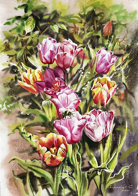 Тюльпани -2, 40*50см. Набір зі стразами (полотно+тримач)