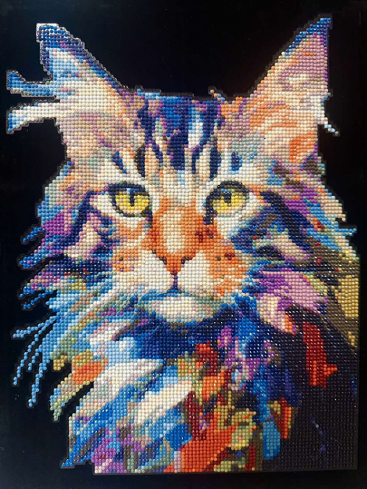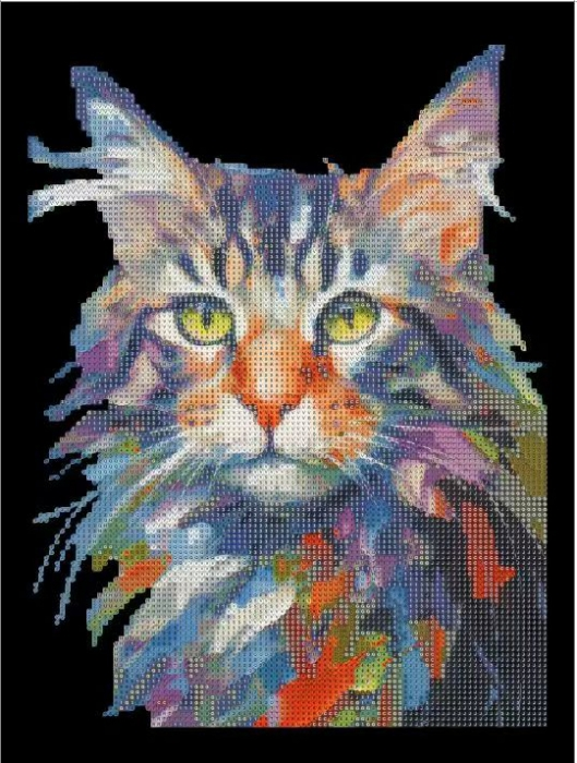 Кольоровий кіт, 30*40см. Набір зі стразами на оксамитовому полотні з підрамником