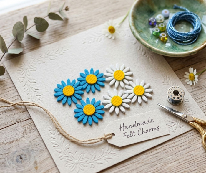 Декоративний виріб з фетру Ромашка, 4 см, 6 шт. в пак. мікс