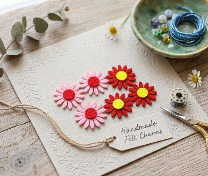 Декоративний виріб з фетру Ромашка, 4 см, 6 шт. в пак., мікс