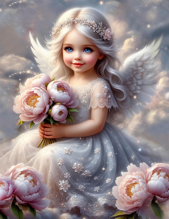 Набір зі стразами на підрамнику 5D Янгол радості, 23*30см