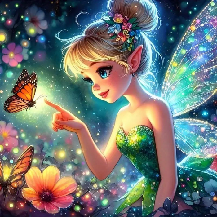 Набір зі стразами на підрамнику 5D Фея Дзвіночок, 25*25см
