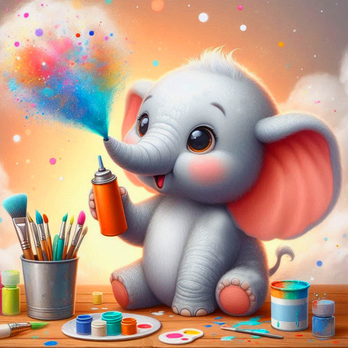 Набір зі стразами на підрамнику 5D Слоненятко-художник, 25*25см